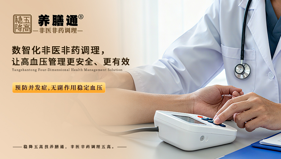 高血压非医非药调理的核心目标是 “无副作用稳定血压、预防并发症、减少药物依赖”,而传统非药物干预往往因 “方案不精准、执行无监督、效果难追踪” 导致失败。养膳通的数智化非医非药闭环方案,通过以下优势解决痛点: